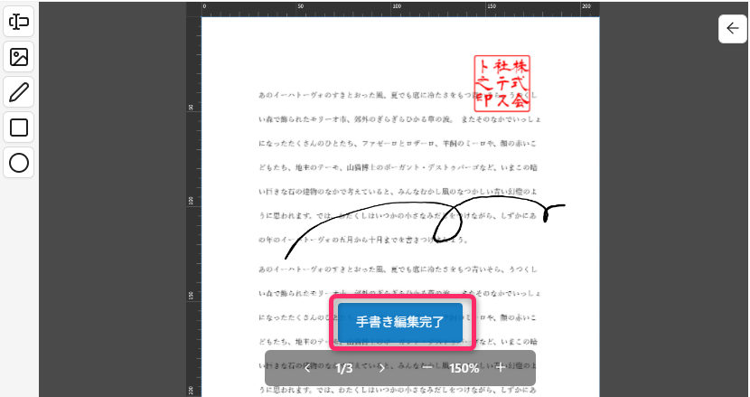 手書き編集時、画面下部に「手書き編集完了」ボタンを表示し、編集状態の解除が行いやすいように改善しました。
