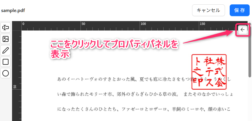 2.PDF編集画面右側のプロパティパネルの開閉の自動設定