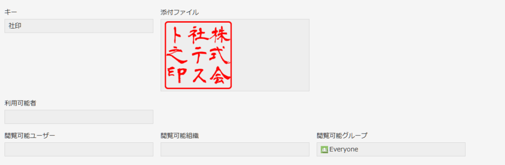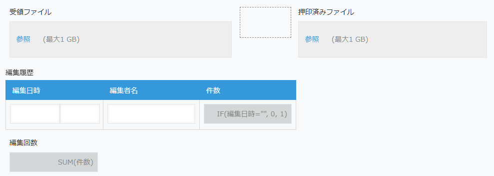 - 自社で押印した後に保存するための「押印済みファイル」(添付ファイルフィールド)