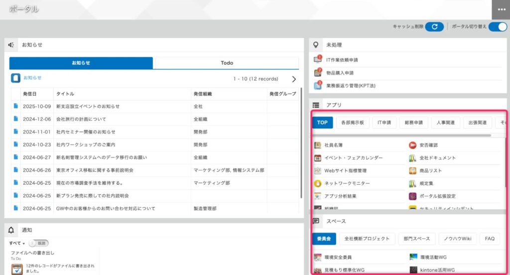 kintoneのポータル・スペースのお知らせ部分の幅を広げ、少し見やすくするTipsをご紹介しました。