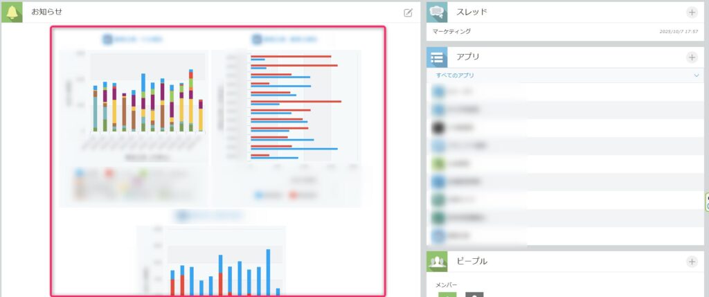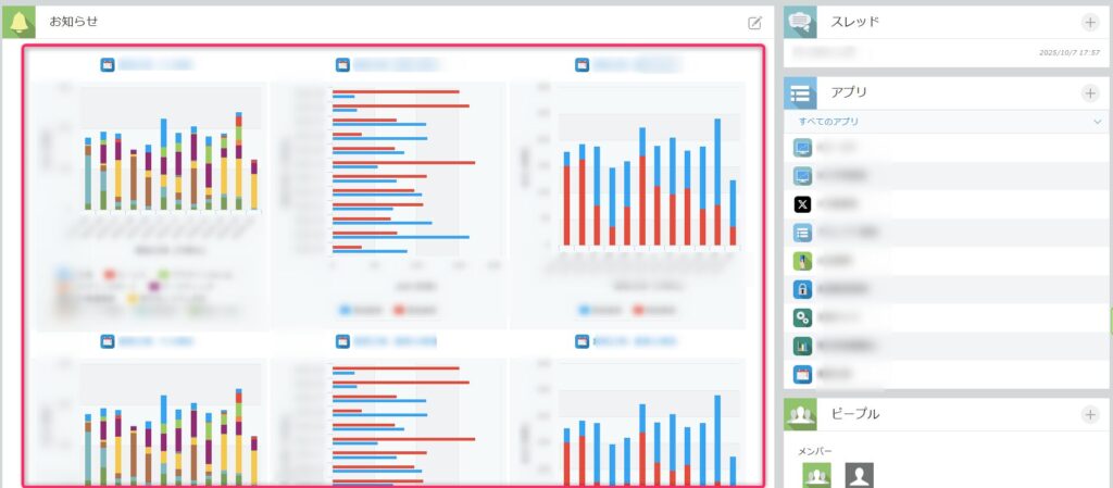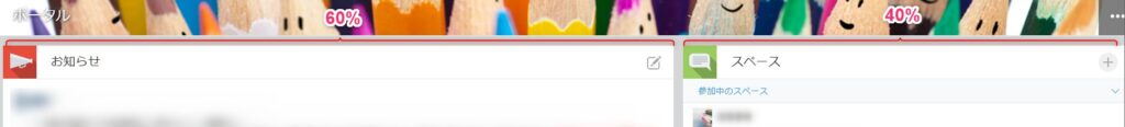 そこでこの記事では、ポータルやスペースのお知らせ部分の幅を広げ、お知らせにグラフを3つ横並び表示させるようにするための方法をご紹介します。
