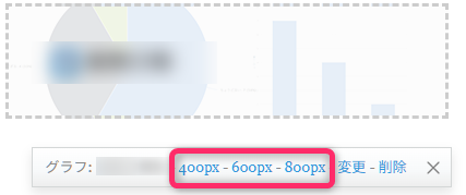 お知らせに表示できるグラフは、幅を400px/600px/800pxから選択することができます。