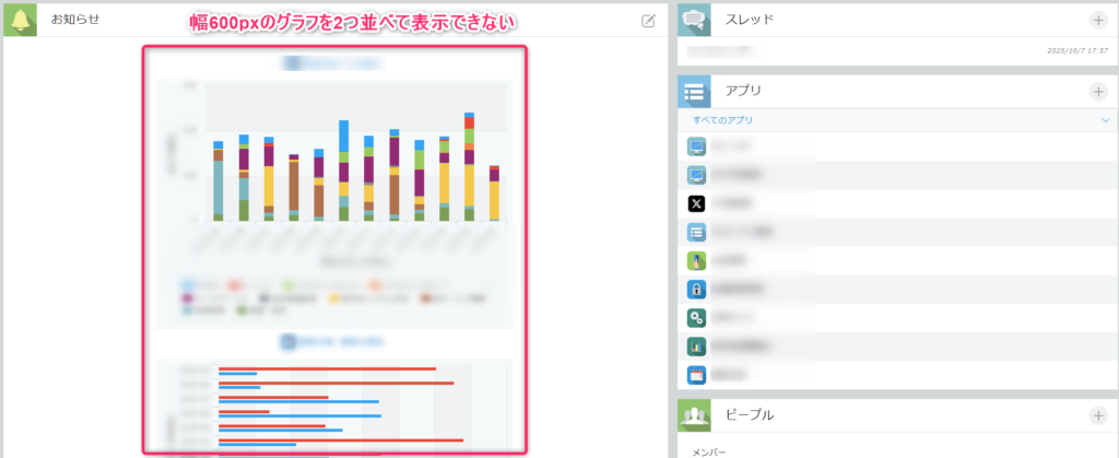 左側と右側の比率なんてどうでもいいと思うかもしれませんが、比率が変わったことで、以前はできていた「お知らせにグラフを3つ横並び表示する」ということができないのです。