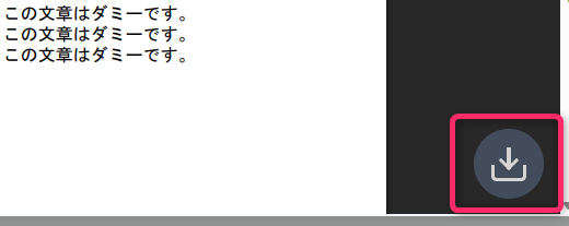 PDFプレビュー表示をした際に、標準ではプレビューの上側にダウンロードボタンが表示されますので、そこからファイルのダウンローが可能です。ただ、ここからダウンロードを行うと、ファイル名に見慣れない文字が設定されてしまうことになります。