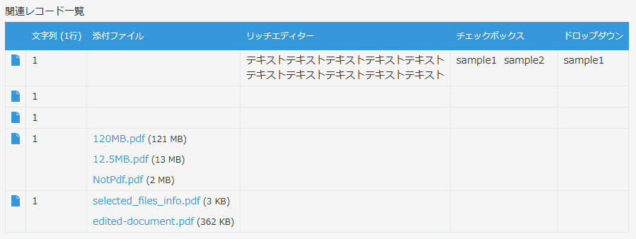 kintone標準の場合のテーブル・関連レコードの表示と、縞々表示した場合とで比較を行ってみると、次のような見た目の変化があります。